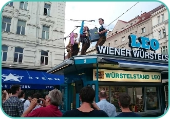 Attention cyclists! The LEO sausage stand is located directly on the cycle path.